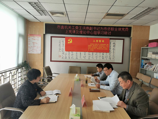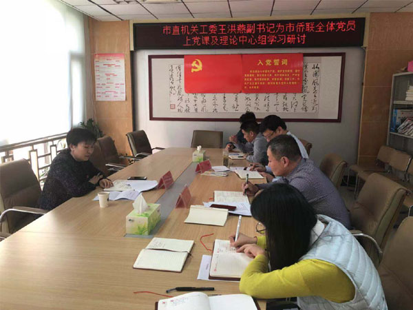10月31日,市侨联召开党组理论学习中心组学习研讨,市直机关工委副书记王洪燕为全体党员上党课。