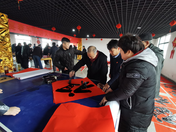 随后,枣庄市政协常委、市留学人员及眷属联谊会副会长、中国第一榜书书法家张切易等知名书法家也现场挥毫泼墨,为村民们写春联送祝福。村民们纷纷表示,感谢党委政府和侨联组织的文化关怀,感谢安侨集团的宴请厚爱,希望新的一年生活更加红红火火。